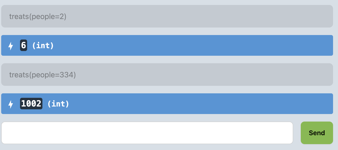 treats REPL ExamplesTry a few additional function calls to be sure your function is working as you expect!